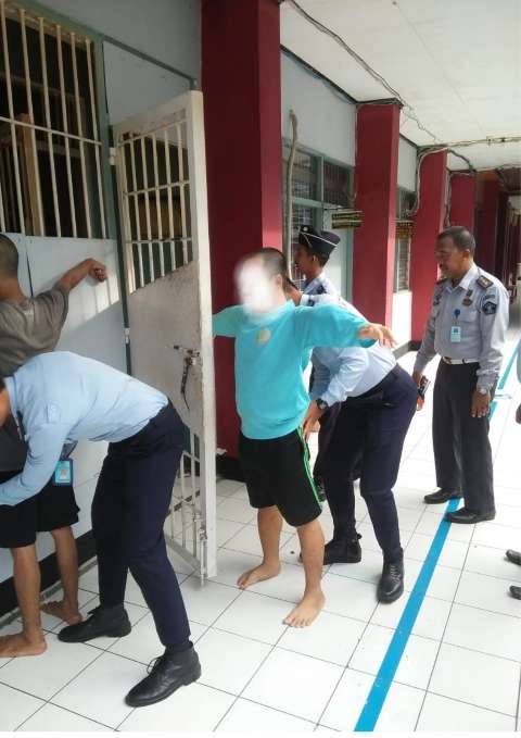 Para WBP yang sebelumnya berada di dalam kamar-kamar, secara bergantian diminta untuk keluar kamar. Beberapa petugas juga melakukan pemeriksaan terhadap badan dan pakaian yang dikenakan.