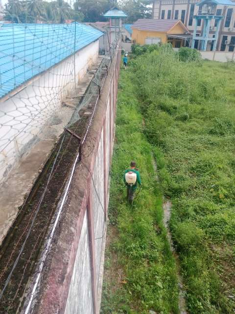 Dengan pengawasan dari petugas dan staf Lapas Amuntai, seorang warga binaan sedang melakukan penyemprotan rumput di area sekeliling tembok luar Lapas Kelas IIB Amuntai. Tindakan ini untuk memastikan tumbuhan liar dan rumput liar di sekitar Lapas Amuntai terkontrol dengan baik.