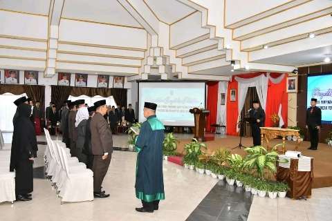 Pelantikan dan pengambilan sumpah jabatan pejabat tinggi pratama dan pejabat pengawas tersebut, dihadiri Sekretaris Daerah (Sekda) Muhammad Noor, dan para kepala organisasi perangkat daerah, kepala bagian dan camat.