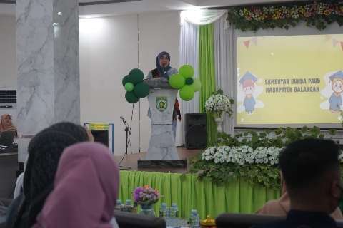 Paringin, kalselpos.com-Ketua Dewan Pembina Paud Kabupaten Balangan ,Hj.Sri Huriati Hadi ,yang juga isteri Bupati Balangan menghadiri perpisahan Paud Permata Hati yang berlangsung di Aula Mayang Maurai Paringin belum lama tadi.