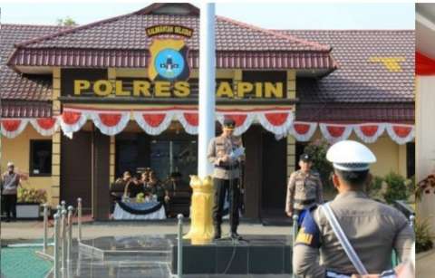 Bertindak sebagai Inspektur Upacara Kapolres Tapin AKBP Sugeng Priyanto dihadiri Kasat Pol PP Tapin Mahyudin, Kadishub Tapin M Noor, dan Perwakilan Dandim 1010 Tapin.