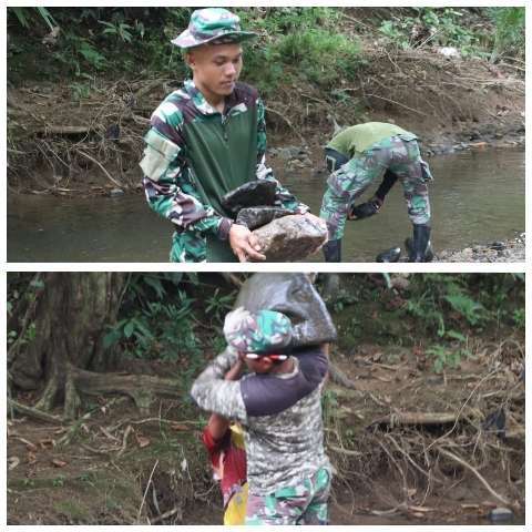 Safrudin Warga Dusun Paniungan mengaku sangat senang dan mengucapkan terima kasih kepada Satgas TMMD yang telah mempelopori kegiatan gotong-royong mengambil material batu di sungai untuk pembangunan Pos Kamling yang sudah didambakan warga.