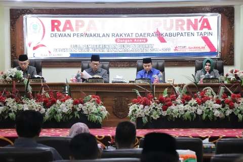 Rapat paripurna di pimpin Ketua DPRD Tapin H Yamani didampingi Wakil Ketua Hj Herny Mustika. Turut hadir Bupati Tapin HM Arifin Arpan dan Sekretaris Daerah Tapin Dr Sufiansyah dan Pimpinan Muspida Tapin.