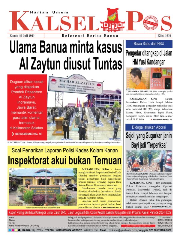 Ulama Banua minta kasus Al Zaytun diusut Tuntas. Kalselpos 1932 kalselpos27 Juli 2023136 views Bacaan LainnyaTerkait Korupsi Dana Desa Rp657 juta, Eks Kades di Kusan Hilir divonis 3 TahunDireksi baru PAM Bandarmasih terbentuk, Zulbadi dipercaya jadi DirutParkir Pasar Wadai ‘mencekik’, Pengendara Motor ditagih Rp10 Ribu Kalsel Pos Berita Terkini, Kabar Terbaru Hari ini Banjarmasin Kalimantan Selatan dan Nasional Pos terkaitTerkait Korupsi Dana Desa Rp657 juta, Eks Kades di Kusan Hilir divonis 3 TahunDireksi baru PAM Bandarmasih terbentuk, Zulbadi dipercaya jadi DirutParkir Pasar Wadai ‘mencekik’, Pengendara Motor ditagih Rp10 Ribu