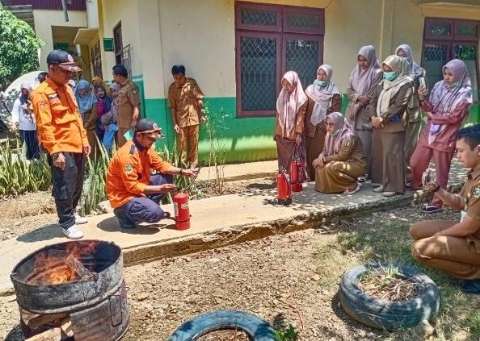 sosialisasi penggunaan APAR (Alat Pemadam Api Ringan) dan Simulasi Damkar (Pemadam Kebakaran) di UPT Puskesmas Lok Batu, Kecamatan Batumandi Senin (7/8) lalu.