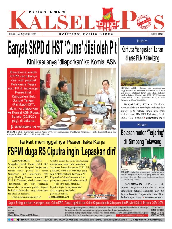 Banyak SKPD di HST ‘Cuma’ diisi oleh Plt. Kalselpos 1950 kalselpos23 Agustus 2023155 views Bacaan LainnyaTerkait Korupsi Dana Desa Rp657 juta, Eks Kades di Kusan Hilir divonis 3 TahunDireksi baru PAM Bandarmasih terbentuk, Zulbadi dipercaya jadi DirutParkir Pasar Wadai ‘mencekik’, Pengendara Motor ditagih Rp10 Ribu Kalsel Pos Berita Terkini, Kabar Terbaru Hari ini Banjarmasin Kalimantan Selatan dan Nasional Pos terkaitTerkait Korupsi Dana Desa Rp657 juta, Eks Kades di Kusan Hilir divonis 3 TahunDireksi baru PAM Bandarmasih terbentuk, Zulbadi dipercaya jadi DirutParkir Pasar Wadai ‘mencekik’, Pengendara Motor ditagih Rp10 Ribu