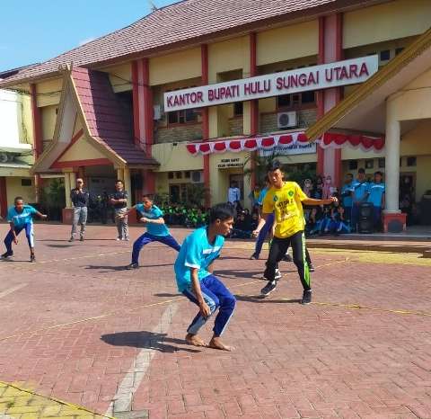 Pesertanya diikuti oleh Pelajar dari SLTP/SLTA sederajat dan mahasiswa di Kabupaten HSU, Kamis (24/08) di halaman kantor Bupati HSU.