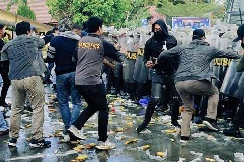 Perlu diketahui pada simulasi Sispamkota itu, personel Polres Tanbu dan Brimob Batalyon A Batulicin dengan menggunakan pakaian anti huru hara dan kendaraan taktis memperagakan teknik penanganan massa unjuk rasa yang bertindak anarkis di Kantor KPU Tanah Bumbu.