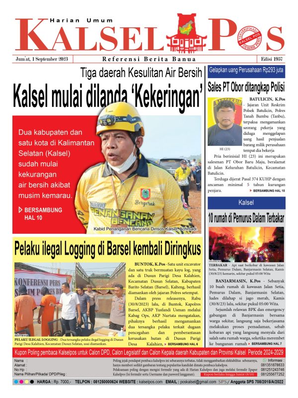 Kalsel mulai dilanda ‘Kekeringan’. Kalselpos 1957 kalselpos1 September 2023129 views Bacaan LainnyaTerkait Korupsi Dana Desa Rp657 juta, Eks Kades di Kusan Hilir divonis 3 TahunDireksi baru PAM Bandarmasih terbentuk, Zulbadi dipercaya jadi DirutParkir Pasar Wadai ‘mencekik’, Pengendara Motor ditagih Rp10 Ribu Kalsel Pos Berita Terkini, Kabar Terbaru Hari ini Banjarmasin Kalimantan Selatan dan Nasional Pos terkaitTerkait Korupsi Dana Desa Rp657 juta, Eks Kades di Kusan Hilir divonis 3 TahunDireksi baru PAM Bandarmasih terbentuk, Zulbadi dipercaya jadi DirutParkir Pasar Wadai ‘mencekik’, Pengendara Motor ditagih Rp10 Ribu