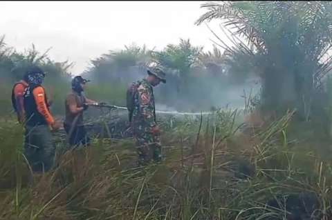 Untuk menjangkau titik api, tim gabungan menurunkan mesin portabel ke kawasan kebun sawit yang terbakar tersebut.