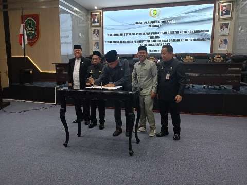 Banjarmasin,kalselpos.com – DPRD Kota Banjarmasin bersama Pemerintah kota setempat, akhirnya menetapkan Rancangan Anggaran Pengeluaran dan Belanja Daerah (APBD) Perubahan tahun 2023 menjadi Perda, Senin (11/9) pada rapat Paripurna, di ruang utama gedung dewan.