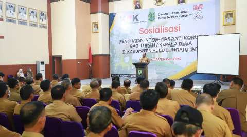 Sosialisasi penguatan integritas anti korupsi diikuti lurah dan kepala desa di Kabupaten HSU di aula KH. Dr. Idham Chalid. Selasa (03/10).