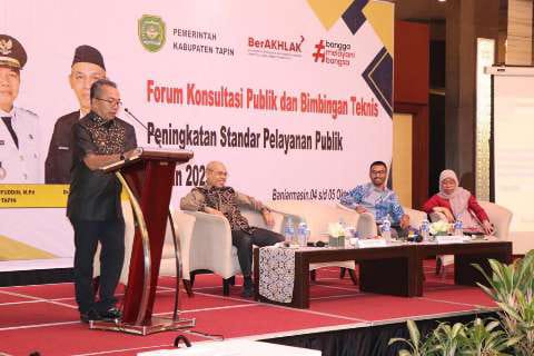 Sementara Kepala Bagian Organisasi Setda Tapin Rini Yusnita melaporkan, kegiatan forum konsultasi publik dan bimbingan teknis Peningkatan Standar Pelayanan Publik bertujuan untuk meningkatkan kepatuhan penyelenggara pelayanan publik sebagaimana aturan yang berlaku tentang penyelenggaraan pelayanan publik.