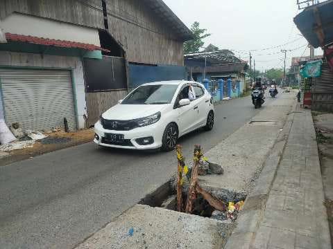 “Warga memasang penanda seperti kayu dan ban bekas. Agar warga yang melintas berhati-hati,” ujar Sugiono.