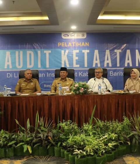 Marabahan, kalselpos.com – Ditandai ketukan palu Pj Bupati Barito Kuala Mujiyat, S.Sn., M.Pd membuka pendidikan pelatihan Aparat Pengawas Intern Pemerintah (APIP) Inspektorat di Banjarmasin, Senin (23/10) diikuti sebanyak 36 PNS yang akan menempuh 50 Jam Pembelajaran(JP).