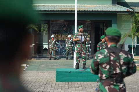 Dandim 1022/TNB Letkol Inf Aldin Hadi, S.H., M.Tr (Han), sedangkan sebagai Komandan Upacara Letda Inf Joni Ilham.