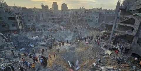 Gambar-gambar jenazah yang berada di reruntuhan dan kondisi mengerikan di Gaza telah memicu seruan kepada pihak-pihak penyerang untuk menahan diri. Sementara itu, rangkaian protes berlangsung di jalanan di seluruh dunia.