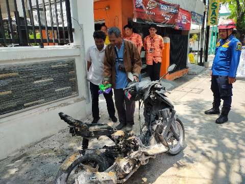 Kronologi kejadian bermula ketika dirinya membeli gorengan. Setiba mau pulang, timbul percikan api dari dalam body (badan) motor yang selanjutnya membakar sepeda motor tersebut.