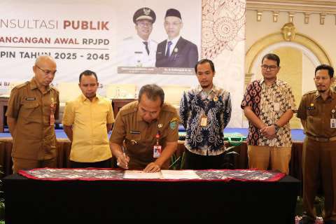 Usai pembukaan forum konsultasi publik penandatangan berita acara kesepakatan oleh perwakilan pemangku kepentingan terkait rancangan awal Rencana Pembangunan Jangka Panjang Daerah (RPJPD) Kabupaten Tapin tahun 2025-2045.