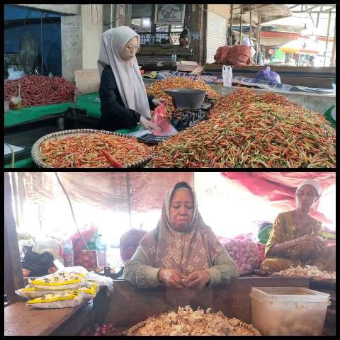 BANJARMASIN, kalselpos.com– Harga bahan pokok di Pasaran Banjarmasin mengalami kenaikan. Salah satunya adalah bawang merah dan cabai mengalami kenaikan yang cukup signifikan.
