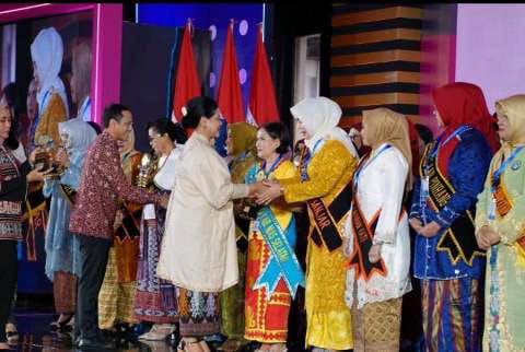 Penyerahan penghargaan diserahkan langsung oleh Ibu Negara Iriana Joko Widodo didampingi Mendikbud Ristek, Nadiem Anwar Makarim.