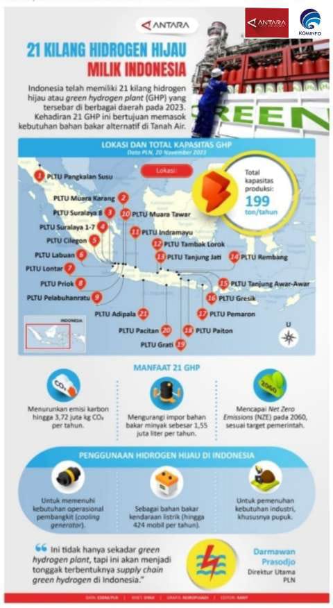 21 kilang hidrogen hijau atau green hydrogen plant (GHP) yang tersebar