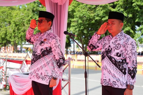Upacara tersebut dipimpin oleh Sekretaris Daerah (Sekda) Kotabaru Drs H. Said Akhmad Assegaf, MM dan diikuti oleh jajaran Forkopimda serta seluruh dewan guru dari jenjang pendidikan TK/PAUD, SD, SLTP dan SLTA se-Kabupaten Kotabaru.