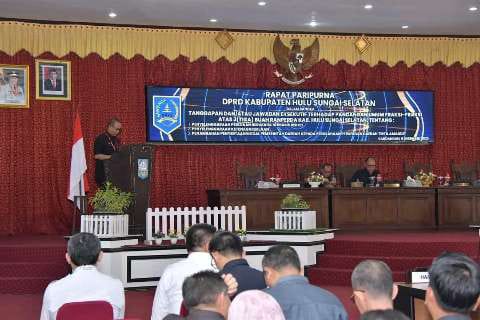 Kandangan, kalselpos.com– Sekretaris Daerah (Sekda) Kabupaten Hulu Sungai Selatan (HSS) Muhammad Noor menjawab pandangan umum fraksi-fraksi DPRD Kabupaten HSS tentang tiga rancangan peraturan daerah (ranperda) penyelenggaraan perizinan berusaha berbasis resiko, penyelenggaraan ketenagakerjaan dan penambahan penyertaan modal kepada perusahaan perseroan daerah Tirta Amandit, Rabu (6/12).