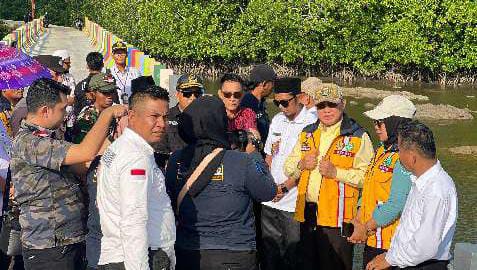Kotabaru, kalselpos.com – Bupati Kotabaru H. Sayed Jafar Alaydrus, SH bersama rombongan SKPD yang terkait meninjau secara langsung pembangunan jembatan yang telah terealisasi yang berada di wilayah Desa Tanjung Serudung Kecamatan Pulau Laut Selatan, Rabu (20/12/2023). Dimana jembatan ini memiliki panjang kurang lebih 150 meter dengan lebar 3 meter yang dicat dengan warna warni.