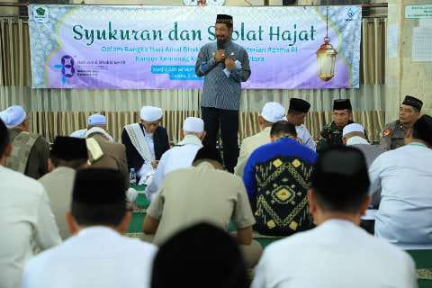 Penjabat (Pj) Bupati HSU Zakly Asswan mengatakan, syukuran dan sholat hajat ini menjadi sarana untuk muhasabah menyambut tahun 2024 untuk mendekatkan diri kepada Allah SWT guna menumbuhkan rasa ikhlas dalam melaksanakan tugas dan tanggung jawab sebagai insan Kemenag sesuai moto yaitu Ikhlas beramal.