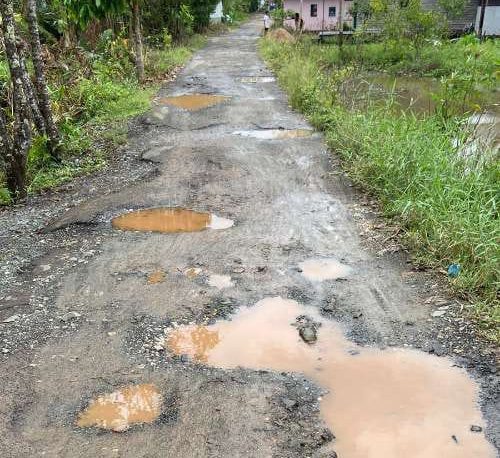 ” Kondisi ruas jalan jika sehabis hujan, tidak jarang warga pengendara terjatuh dikarenakan akibat jalan licin dan terperosok ke lubang yang tertutup air”, jelasnya Razif Mustafa.