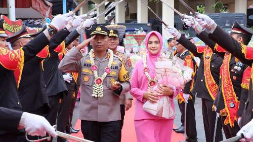 Usah kenal pamit, dilaksanakan pelepasan dari AKBP Moch. Isharyadi F dan Ny. Mendy Isharyadi oleh perwira dan seluruh personil Polres HSU dengan memasuki Payung Pora.