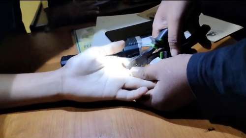 “Kami upayakan untuk melepas cincin tersebut. Kemudian mengoleskan alkohol di bagian jari dan cincin tersebut dengan tisu, yang kemudian dilakukan pemotongan menggunakan tang potong,” kata Edy.
