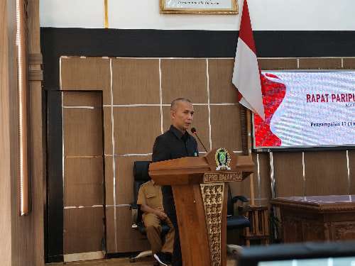 Rapat berlangsung di ruang rapat paripurna DPRD Kabupaten Balangan, Selasa (16/1/2024) yang dipimpin Ketua DPRD Balangan, Ahsani Fauzan dan dihadiri Staf Ahli Bidang Pemerintahan Hukum dan Politik Sekretariat Daerah (Setda) Balangan, Akhmad Fauzi selaku perwakilan Bupati Balangan.
