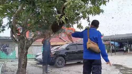 Kabid Damkar dan Linmas, Barkat Syahrul Kalam menambahkan, saat tim melakukan evakuasi, belum terlihat sarang dari lebah madu, kemungkinan baru beberapa hari saja kawanan lebah tersebut di pohon.