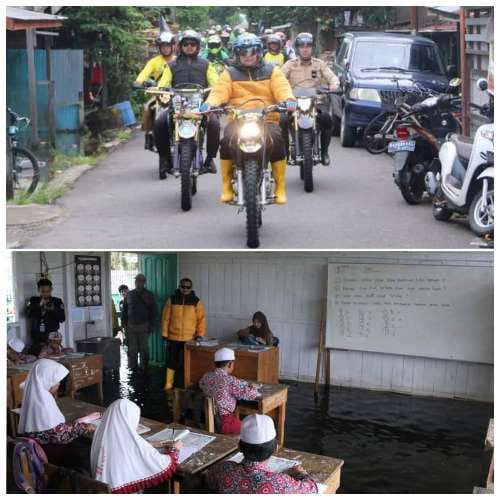 “Meski sekolah terendam banjir, anak-anak tetap sekolah dan semangat dalam proses belajar mengajar,” ujar Pj Bupati Hermansyah.