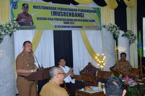 Kandangan,Kalselpos.com – Penjabat (Pj) Bupati Hulu Sungai Selatan (HSS) Hermansyah membuka musyawarah perencanaan pembangunan (musrenbang) rencana kerja pemerintah daerah (RKPD) 2025 tingkat Kecamatan Angkringan, Senin (29/1/2024) di aula di Kecamatan Angkinang.
