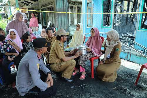 Pj Bupati HSU didampingi Sekretaris Daerah (Sekda) HSU H. Adi Lesmana, bersama, Kepala Dinas Sosial Surya Sufi, dan Camat Amuntai Utara Astiana Rosanti, serta Kapolsek Amuntai Utara Ipda Fannan mendatangi korban kebakaran dan menyerahkan bantuan