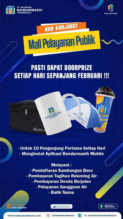Oleh sebab itu, Murjani pun mengajak seluruh pelanggan PAM Bandarmasih, agar bisa mengunjungi PAM Bandarmasih di MPP Kota Banjarmasin.