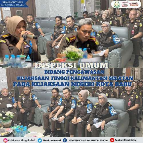 Tim Pengawasan Kejaksaan Tinggi Kalsel melakukan Inspeksi untuk pemeriksaan secara menyeluruh terhadap kepatuhan seluruh jajaran dalam mempedomani aturan dan petunjuk teknis kinerja maupun anggaran serta kondite perilaku segenap Korps Adhyaksa.