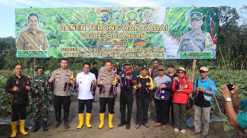 Paringin, Kalselpos.com – Kepolisian Resor (Polres) Kabupaten Balangan bersama Pemerintah Kabupaten (Pemkab) Balangan melaksanakan kegiatan memanen terong dan cabai dalam rangka pengendalian inflasi dan peningkatan ekonomi masyarakat di Kabupaten Balangan.