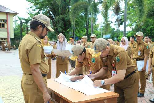Apel yang dipimpin Pj Bupati HSU Zakly Asswan sekali dilakukan Penandatangan Perjanjian Kinerja dan Pakta Integritas Kepala SKPD dengan Pj Bupati HSU tahun 2024.