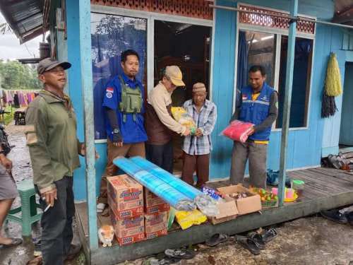 Bantuan disalurkan oleh Tim Tagana Dinas Sosial Kabupaten Tapin langsung kepada korban yang rumahnya tertimpa pohon tumbang.