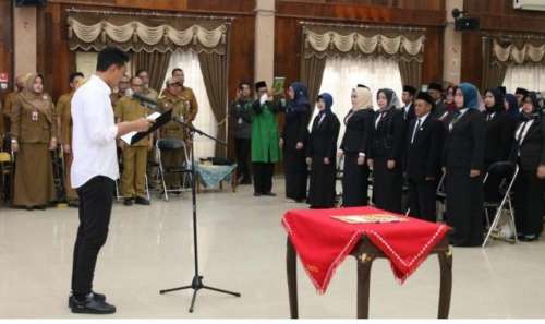 Pengambilan sumpah jabatan yang dilakukan melalui pola rotasi dan promosi dengan rincian 54 pejabat promosi, 59 pejabat mutasi serta 3 pejabat fungsional yang diberi tugas tambahan sebagai kepala puskesmas.