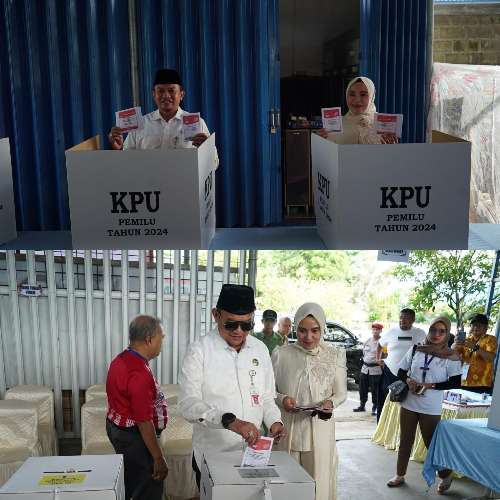 Saat datang ke TPS Pj Bupati Hermansyah bersama istrinya menyapa dengan ramah warga datang untuk menggunakan hak suara dalam Pemilu 2024.