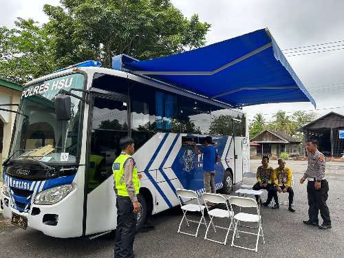 Masyarakat yang tidak sempat ke pelayanan terpadu Polres HSU untuk memperpanjang SIM, kini dapat melakukan perpanjangan melalui SIM Keliling (bus) yang kini telah terjadwal setiap minggu.