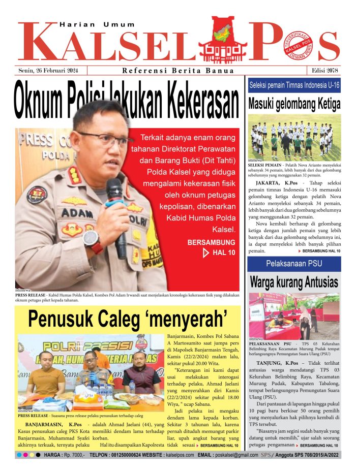 Oknum Polisi lakukan Kekerasan kalselpos26 Februari 2024247 views Oknum Polisi lakukan Kekerasan Penusuk Caleg ‘menyerah’ Seleksi pemain Timnas Indonesia U-16, Masuki gelombang Ketiga Pelaksanaan PSU, Warga kurang Antusias Download Epaper Disini Bacaan LainnyaTerkait Korupsi Dana Desa Rp657 juta, Eks Kades di Kusan Hilir divonis 3 TahunDireksi baru PAM Bandarmasih terbentuk, Zulbadi dipercaya jadi DirutParkir Pasar Wadai ‘mencekik’, Pengendara Motor ditagih Rp10 Ribu Download Epaper Disini Kalsel Pos Berita Terkini, Kabar Terbaru Hari ini Banjarmasin Kalimantan Selatan dan Nasional Pos terkaitTerkait Korupsi Dana Desa Rp657 juta, Eks Kades di Kusan Hilir divonis 3 TahunDireksi baru PAM Bandarmasih terbentuk, Zulbadi dipercaya jadi DirutParkir Pasar Wadai ‘mencekik’, Pengendara Motor ditagih Rp10 Ribu