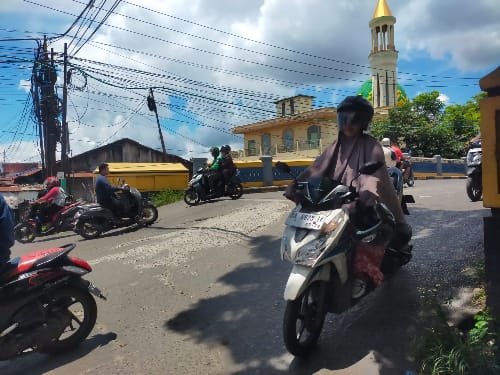 Terpantau, senin (04/03/24) siang.Oprit jembatan tersebut terbilang cukup curam. Jembatan tersebut menuju ke arah Ks Tubun, ketika turunan oprit tersebut terlalu curam.