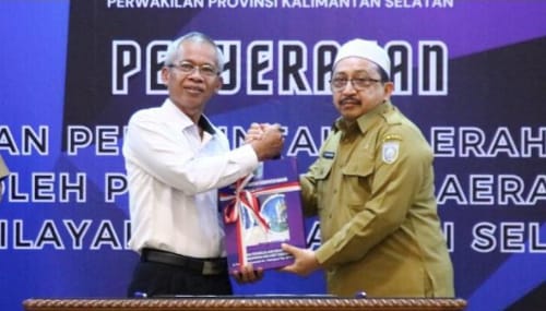 Penyerahan dilakukan Wakil Bupati Banjar Habib Idrus Al-Habsyi kepada Kepala BPK Perwakilan Provinsi Kalsel Rahmadi, di Aula kantornya, Banjarbaru, Senin (4/3/2024) siang kemarin.