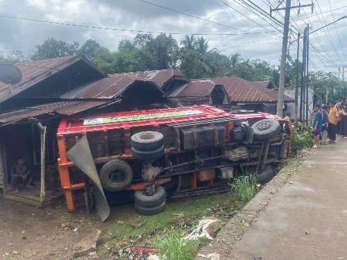 Kecelakaan tersebut dialami oleh 1 unit truk warna merah bermuatan gas LPG 3 Kg yang dikemudikan oleh Jamruni (31) warga desa Palimbangan sari RT. 01 Kecamatan Haur Gading kebupaten Hulu Sungai Utara.